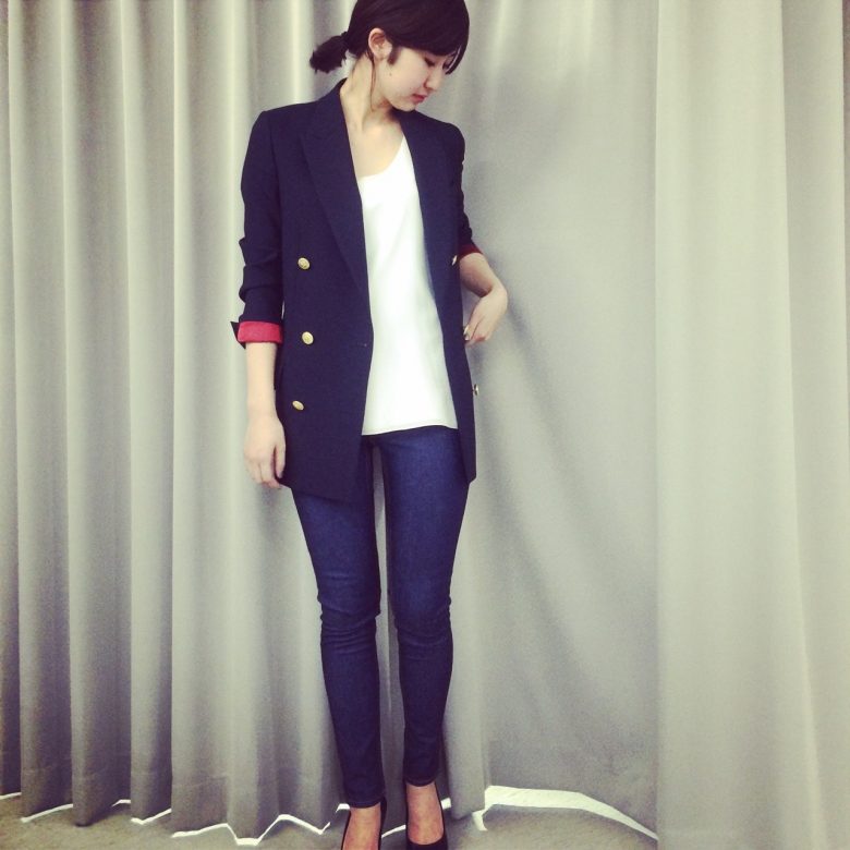 テーラーリングが美しいダブルジャケット。一つは持っておきたいアイテムです。