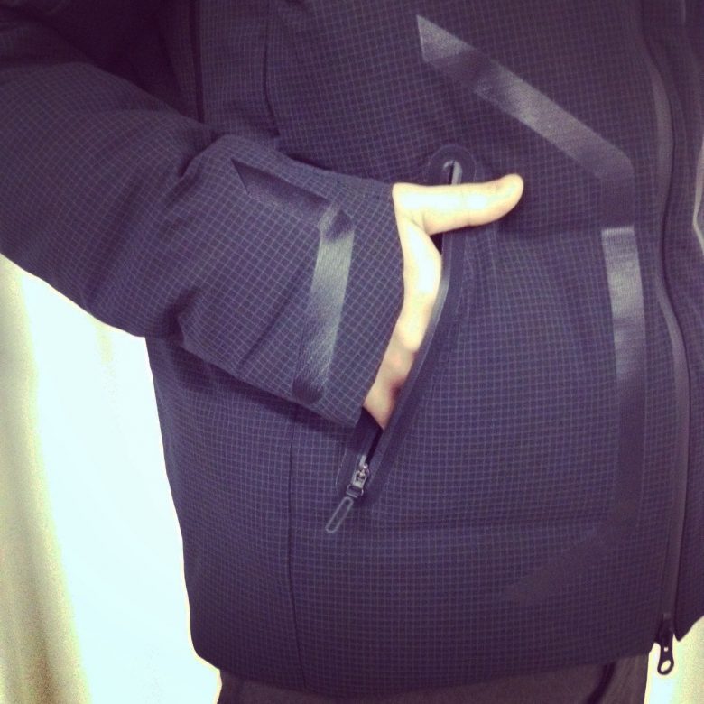 デザインも兼ねたストリームラインは、滴る水の流れをコントロールし、手元やジップへの浸水も防ぎます。