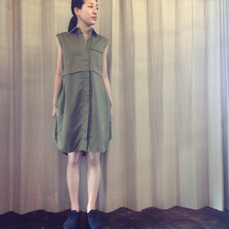 トップ部分は厚手の綿素材とスカート部分はレーヨンサテンの