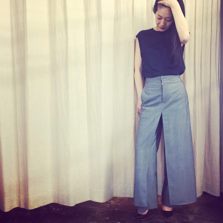 OSAKA 13.04.2016 トラウザーにエプロンを巻いたような デザインが個性的♪ トップスはシンプルにバランスを 取った着こなしがオススメです。 FUMIKA_UCHIDA pants ¥58,000+tax 16ss fumikauchida WEAR