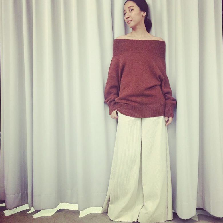 TOKYO 23.09.2016 トレンドのオフショルダーを、トレンドのブリックカラーで。 top…pelleq col…brick,grey ¥36,000+tax pant…MARNI col…white ¥119,000+tax 16aw marni pelleq WEAR
