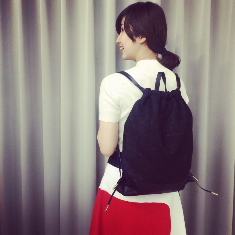 大人なナップサックをコーディネートのポイントに。