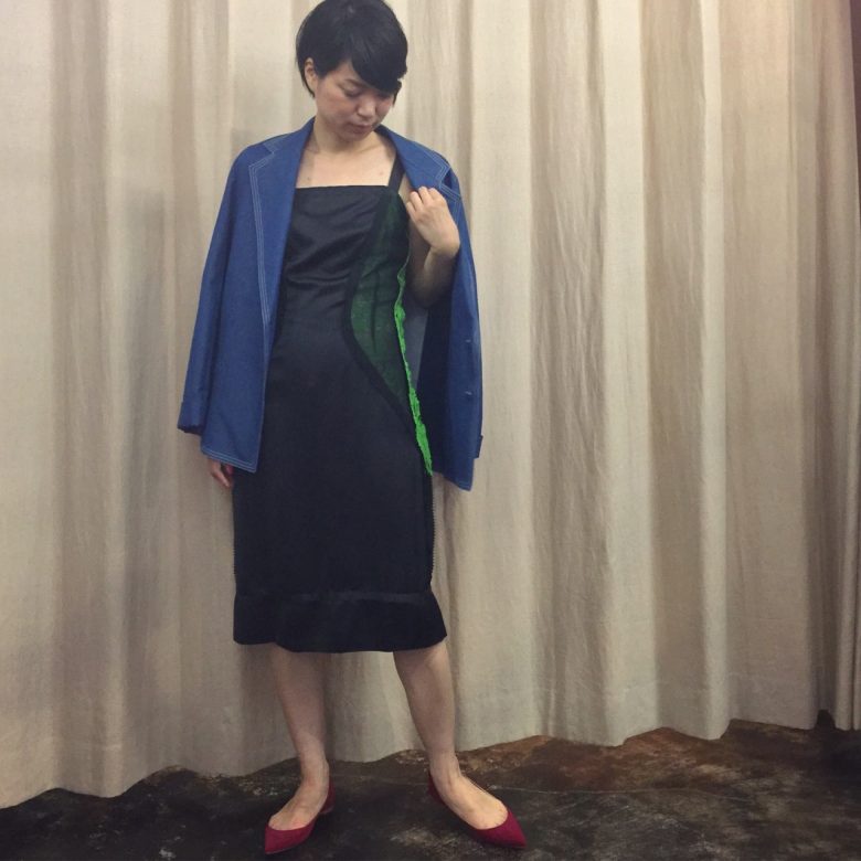 ドレッシーなワンピースに、シャンブレージャケットを合わせて