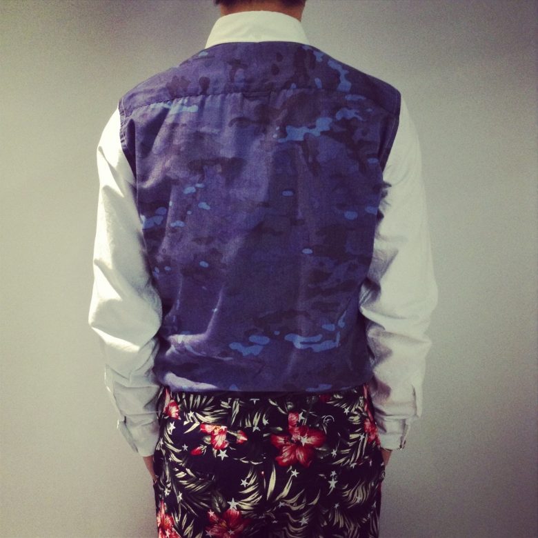 ネイビーのカモフラ柄となります。