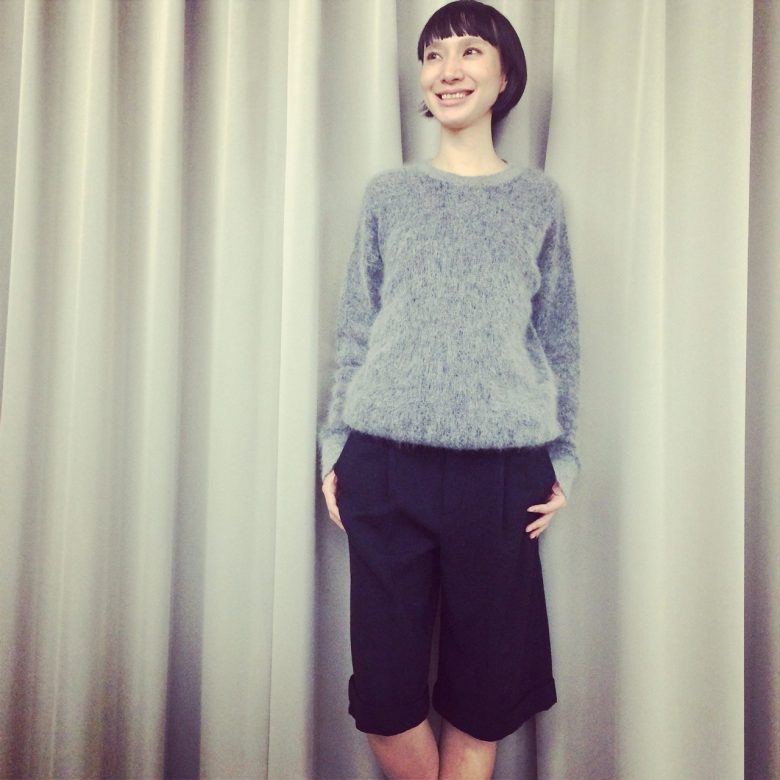 24.08.2014 ネイビーの糸にグレーのモヘアで色彩が美しいニット。黒のパンツと合わせて陰影の動きで変わる色味を主役に◎ knit STELLA McCARTNEY col…grey,ivory ¥81,000- + tax stellamccartney