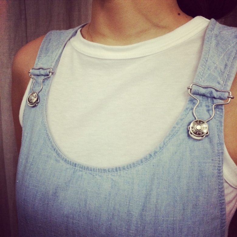 ネックの詰まったトップスと合わせて