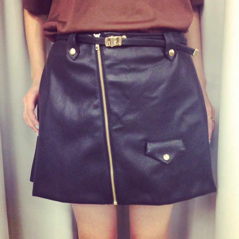 ハードなデザインですが、素材がフェイクレザーなのでこの面白みがあるスタイルに。