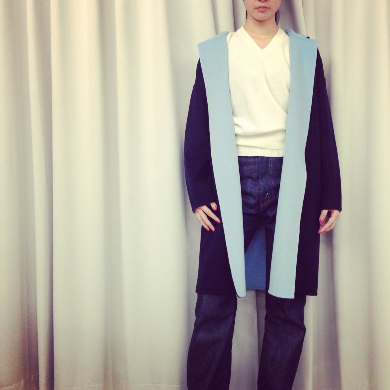 バサッと羽織れるダブルフェイスのコートは軽くて保温性も優れています。