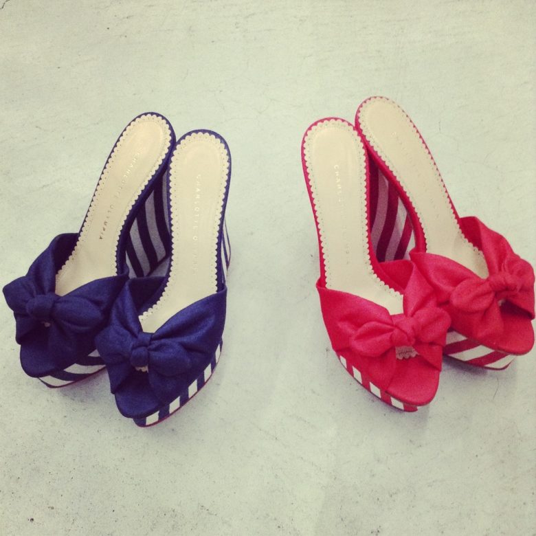 22.05.2014 パッと目を引くリボンサンダル♪ウェッジソールがストライプで360°気を抜きません◎ CHARLOTTE OLYMPIA ¥98,000- + tax charlotteolympia
