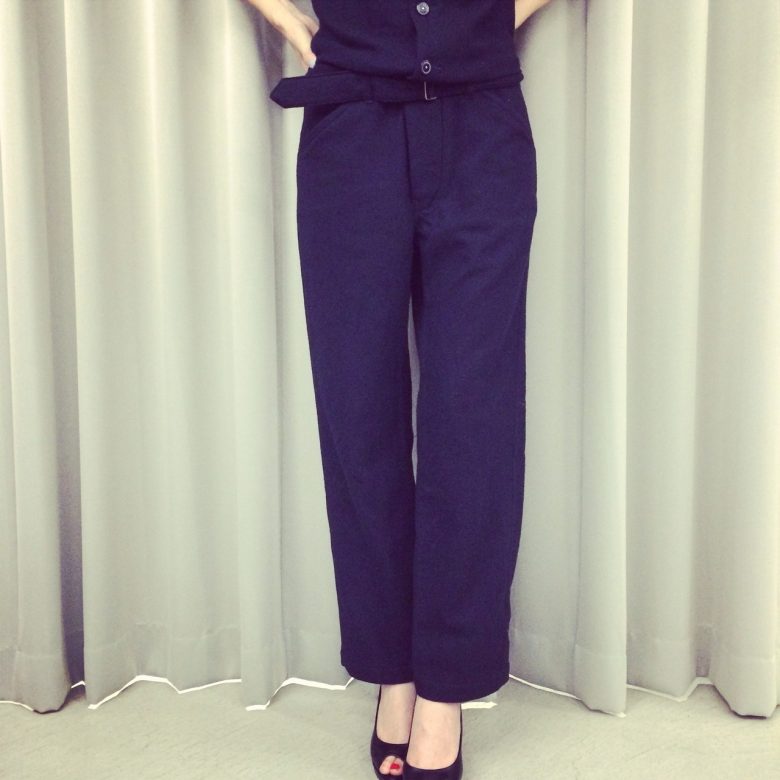 パンツ部分の美しい直線的なシルエットが素材を際立たせます。