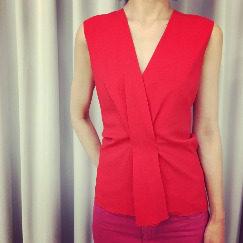 ビビッドな朱赤のカラーに美しいデコルテライン、くびれたデザインのウェスト…女性らしさが詰まっています。