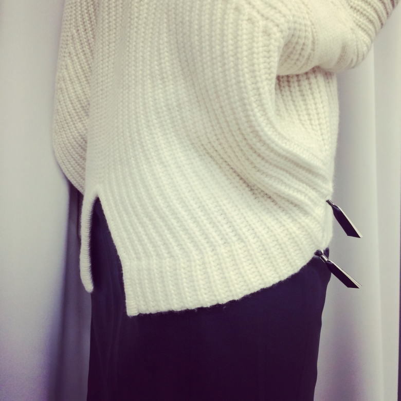 フィッシュテールや裾のフェイクレザーといったTOGAらしさが散りばめられています。