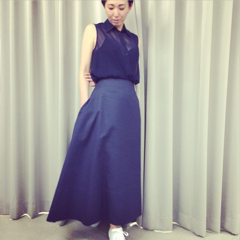 01.03.2015 フレアスカートは大胆にマキシ丈で。 春風になびかせて…♪ MADISON BLUE col…navy ¥41,000+tax acnestudios eytys madisonblue tbyalexanderwang