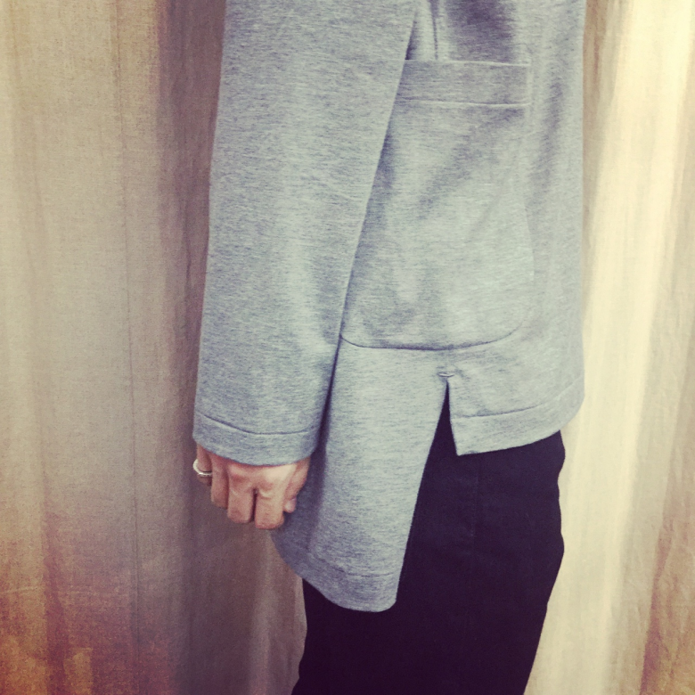 フロントとバックの着丈を変えたデザインとサイドの大きなポケットが特徴的です‼︎