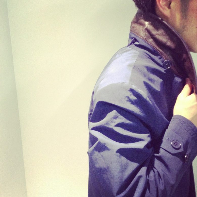襟裏、袖裏、ポケット裏はレザーの切り替えに。