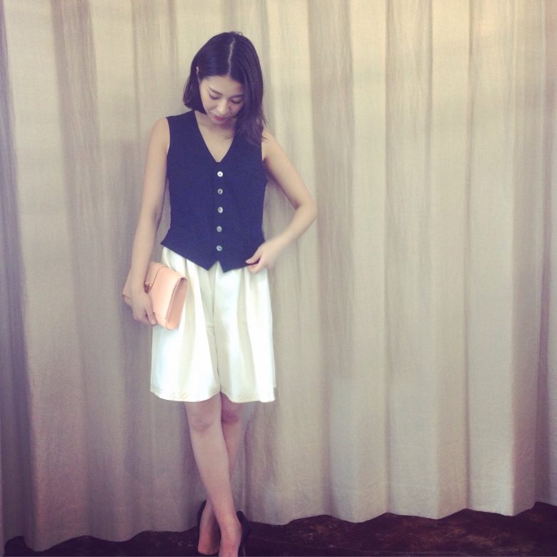 ブラックジレを、ノースリーブのトップスに見立てミニマムに、大人の鮮度あるスタイリング。