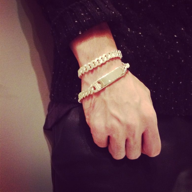 プレートとチェーンのボリューム感で腕回りにアクセントを。