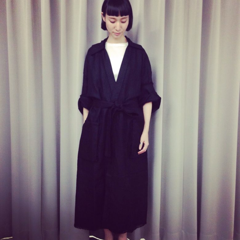 ベルトでギュッと縛るとフロントにはキレイなVのラインが…どんなコーディネートにも羽織りたくなる一枚です◎