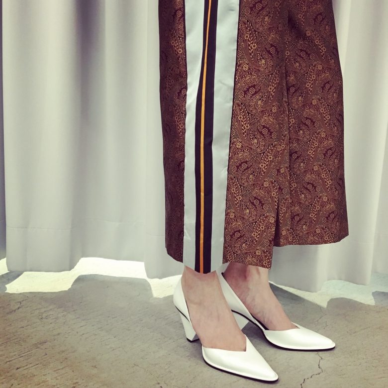 TOKYO 10.10.2016 ペーズリー柄のジャガードで織り上げたラグジュアリーなパンツは、裾広がりのワイドシルエットがポイントに。 16aw hillierbartley stellamccartney WEAR