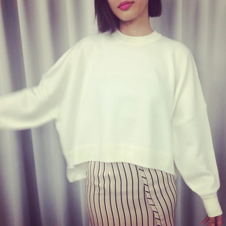 ボディはゆったりめで、立体的なシルエットを作り出します。