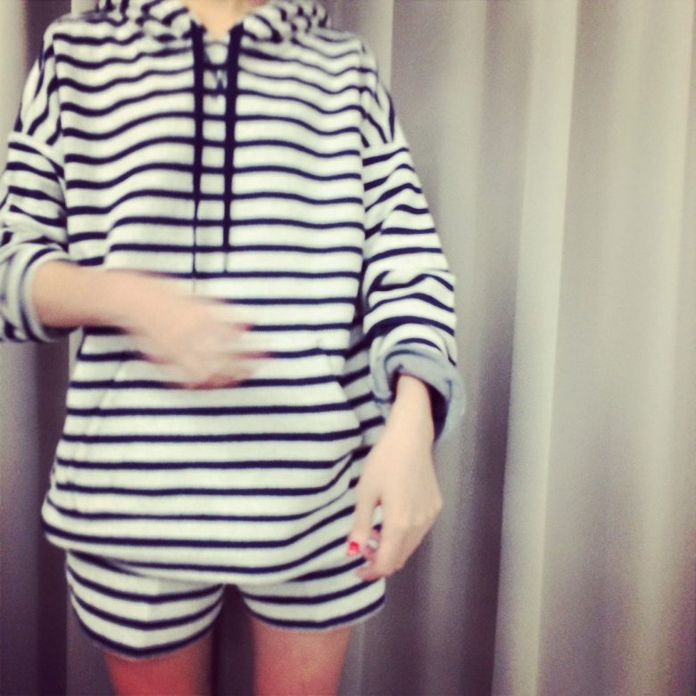 ボリューミーなパーカー×ショーツ…絶妙なバランスです◎