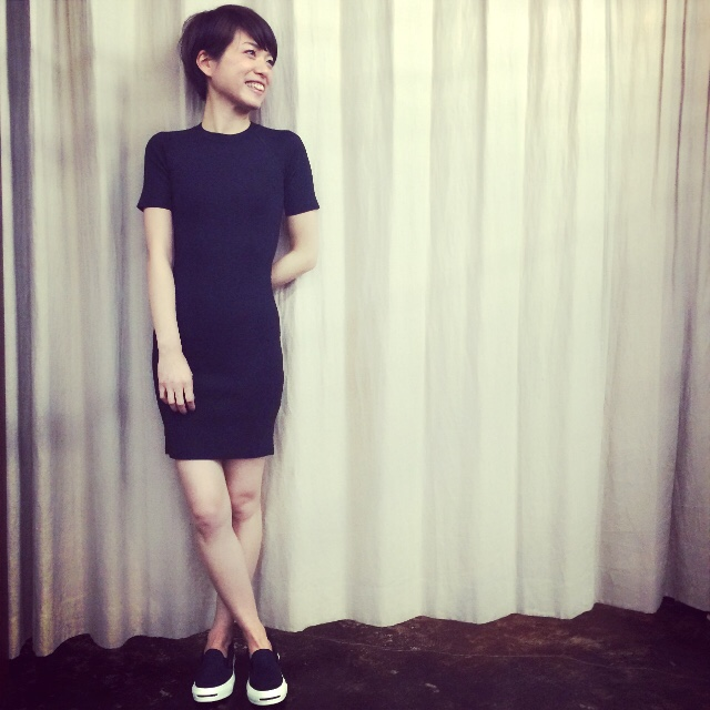 02.02.2015 ミニマムなシルエットの ブラックワンピース。 足元はスリッポンで スポーツテイストに…♫ T-by ALEXANDER WANG ¥41,000+tax converse jackpurcell tbyalexanderwang
