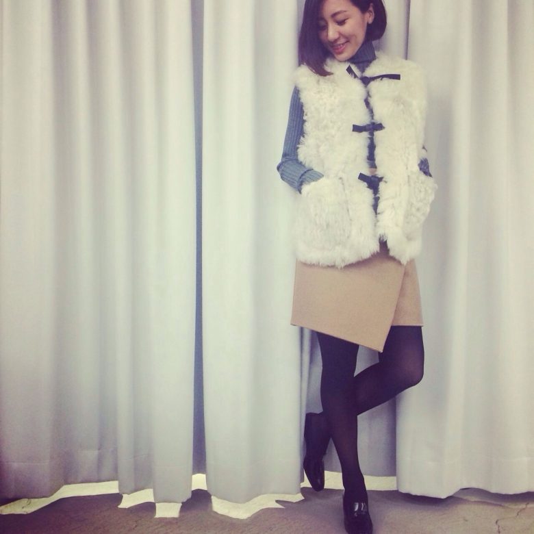 ムートンベストはフェミニンにもマニッシュにも幅広いコーディネートで。