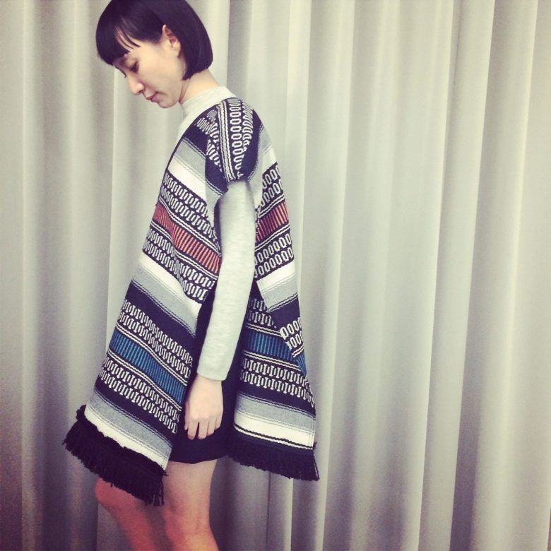 メキシコラグのポンチョ。重みのある素材の揺れ動きがきれいです◎