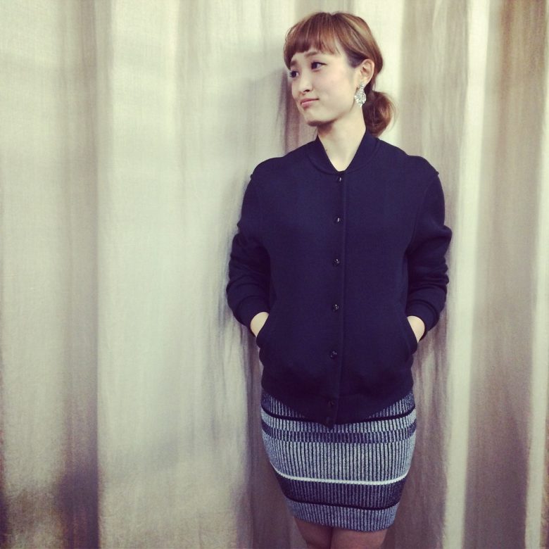 17.08.2014 メンズライクなバーシティジャケットには女性らしいタイトなスカートを◎ T-by ALEXANDER WANG ¥68,500 SKIRT ¥23,500 tbyalexanderwang