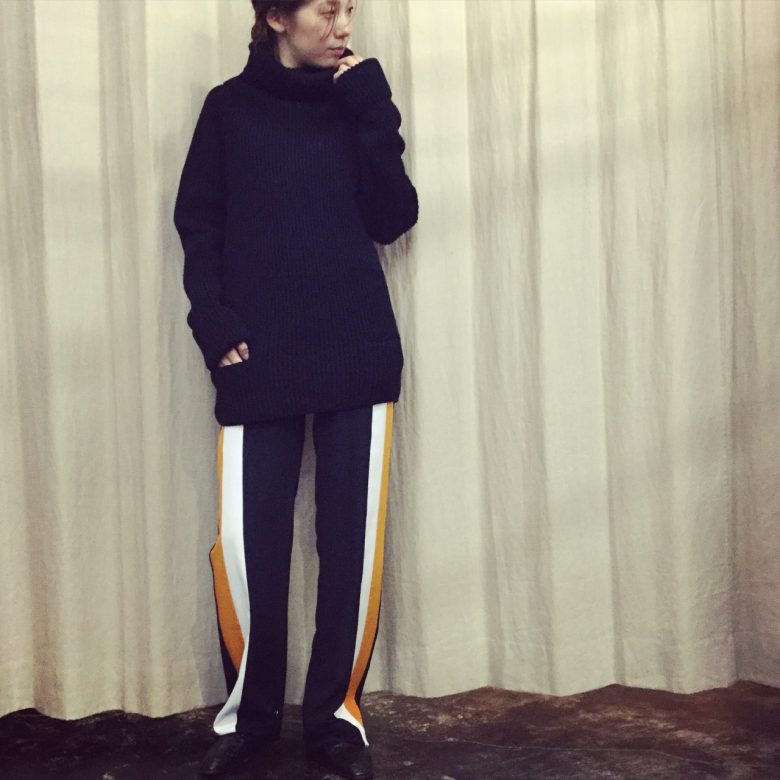 OSAKA 20.08.2016 メンズライクなパンツは レディなニットでフェミニンに♡ 黒とオレンジのコントラストが アクセントに! tops NEHERA ¥86,000+tax pants STELLA McCARTNEY ¥145,000+tax 16aw nehera stellamccartney WEAR