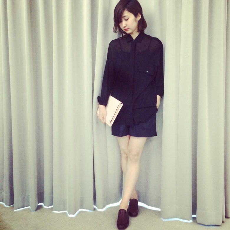 02.02.2015 モードな黒シャツも程よい透け感で女性らしく着て頂けます。 shirts Maison Martin Margiela ¥78,000+tax pants STELLA McCARTNEY ¥78,000+tax maisonmartinmargiela stellamccartney