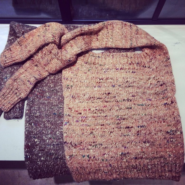 リブ編みの縁取りで、ウェアのようです…♡