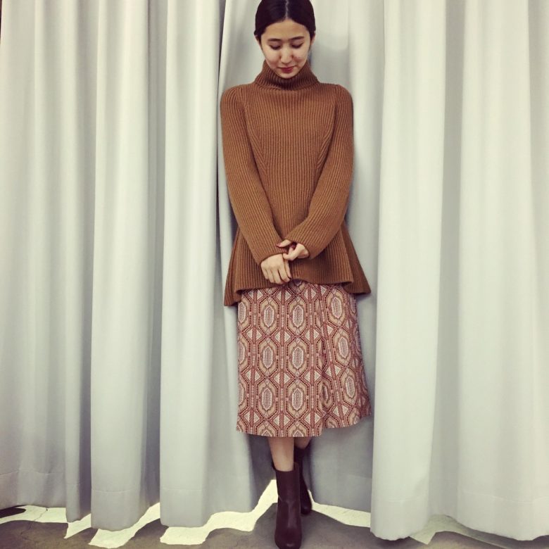 リラックス感がありつつも、上品でシックなデザインがNEHERAの魅力。少し長めのニットも今年らしい雰囲気に。