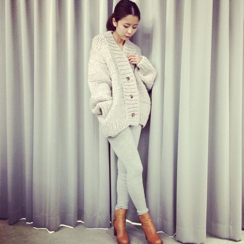ローゲージのボリューミーなニットカーディガン。今季らしくニットパンツと合わせたいです◎