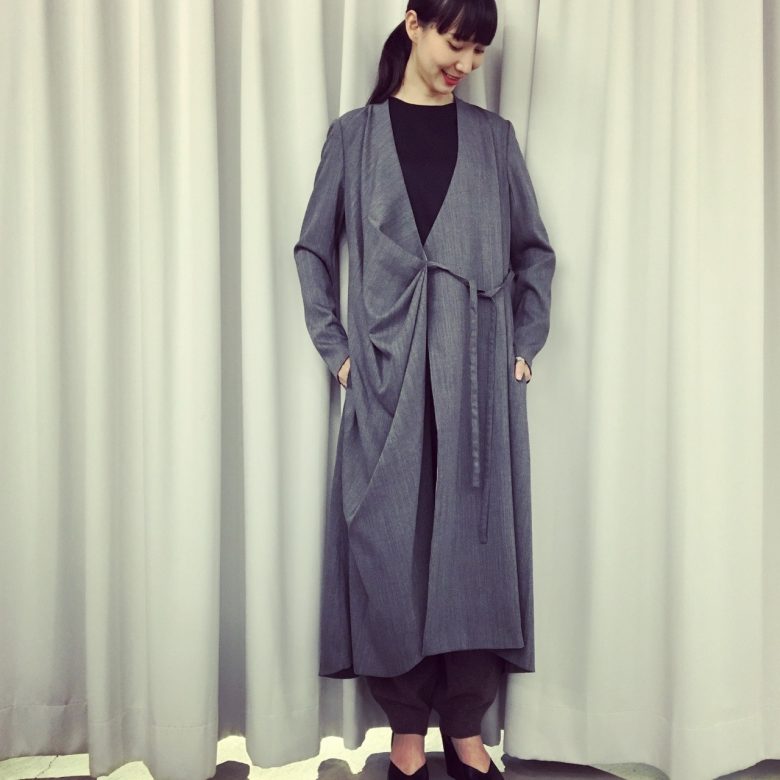 TOKYO 16.09.2016 ヴィンテージの生地を使用したドレスコートは、留めた時に出来るドレープやシルエットが計算され尽くしています。 ラフに羽織った時も様になります。 dress coat pelleq size…F ¥89,000+tax 16aw pelleq WEAR