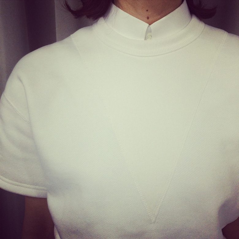 一見ベーシックですが、深めの三角形のV字ガゼットなど、HYKEらしいひねりが利いたアイテムです。