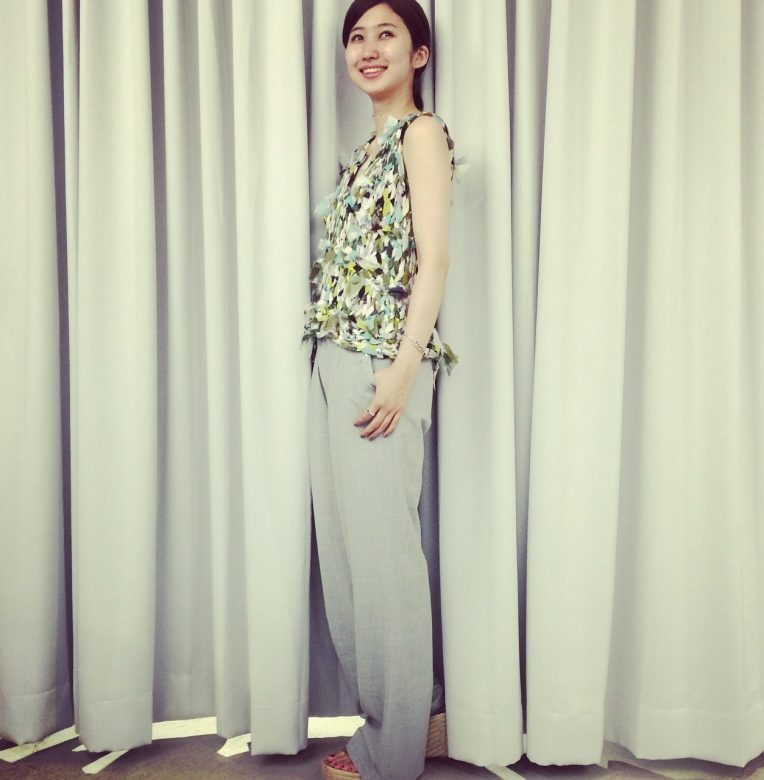 シンプルなボトムでも存在感があります。