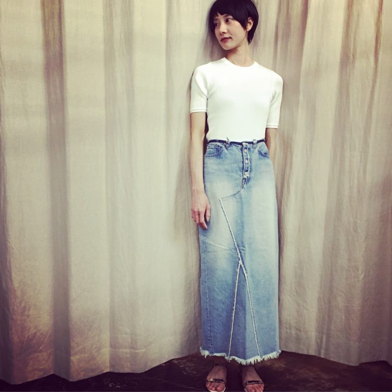 ロングスカートと合わせてもスッキリ見えます♫