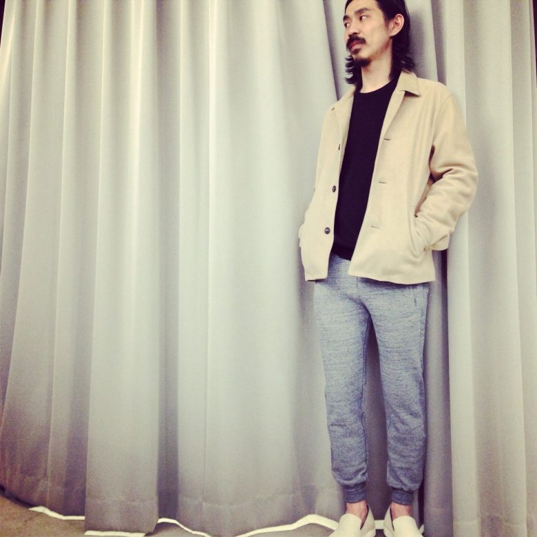 13.03.2015 上品なベージュの表情に細身のスウェットパンツとのスタイリングで! SUEDE BOXING JACKET ¥185,000+tax col…BEIGE size…46,48,50 melinda gloss メリンダグロス
