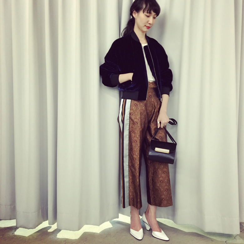 上品な光沢があるブルゾンは、ベルベット素材で今年らしいアイテム。着丈が短めでバランス良く着て頂けます。