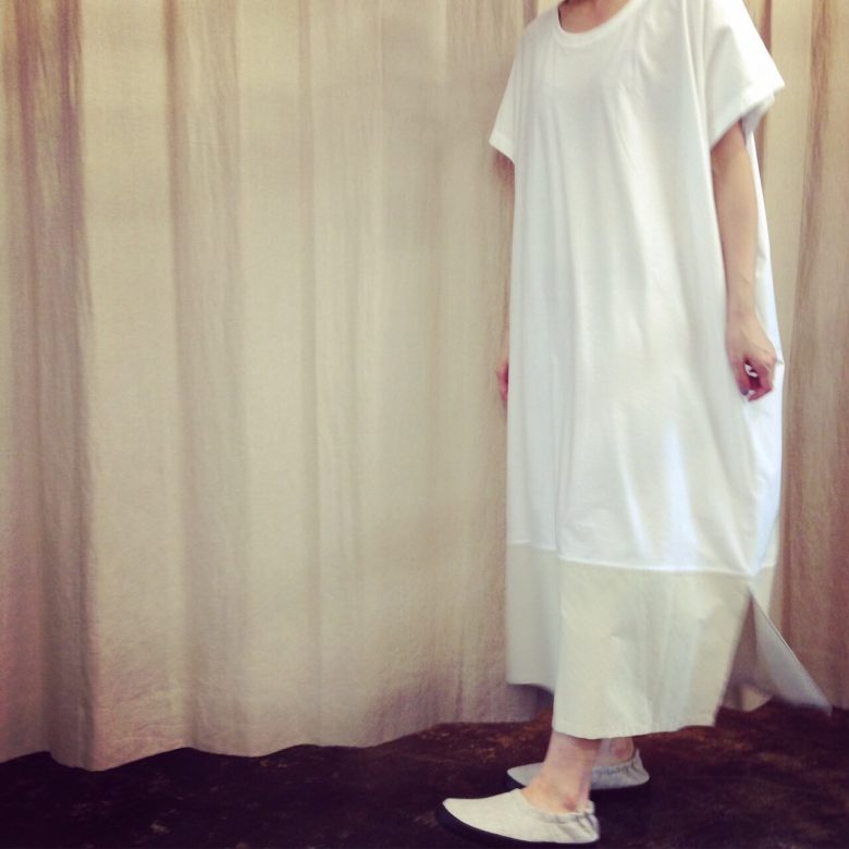 中に着たワンピースは歩くと