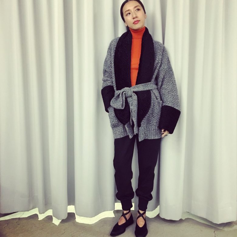 見頃と袖はたっぷりとーボリューム感が贅沢なニットガウン。