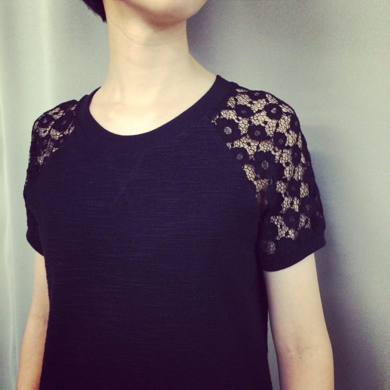 何かとお役立ちのBLACKのワンピース。スリーブ部がレースなので夏もお召しいただきやすいです◎