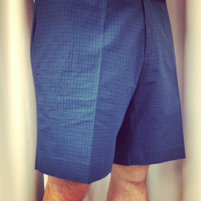 個性的なブルーグリーンに、細かいギンガムチェック。