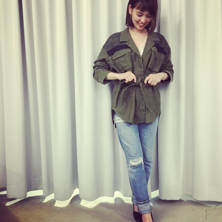 抜け感のあるボリュームとベルト使いが女性らしいバランスお召しいただけます。
