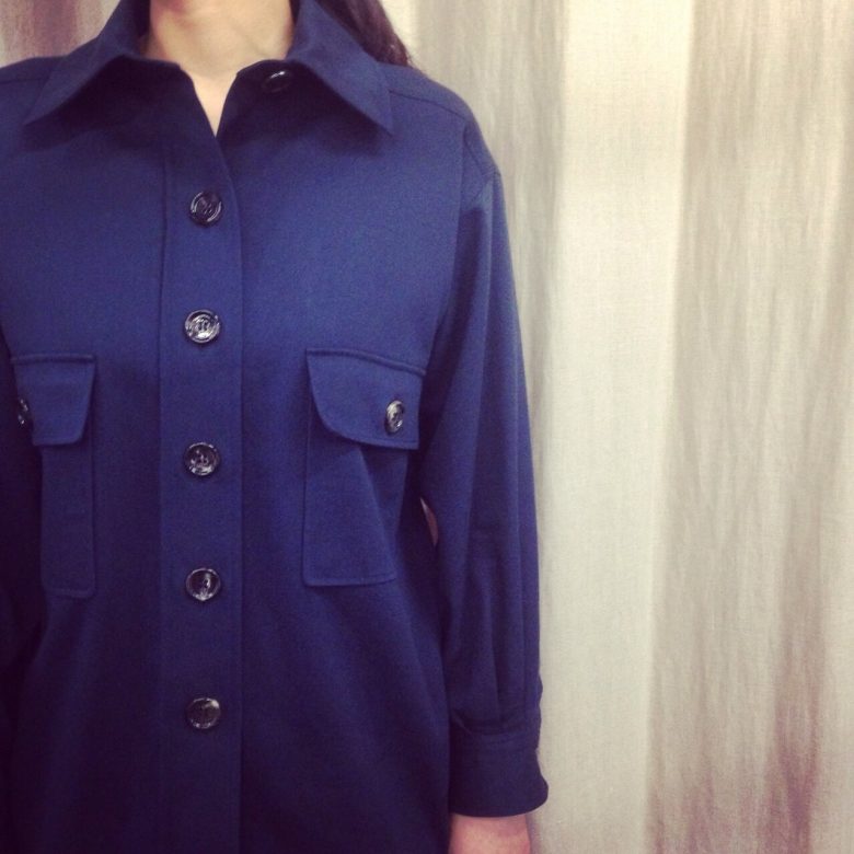 大きめの襟、ボタン、ポケット素敵です。