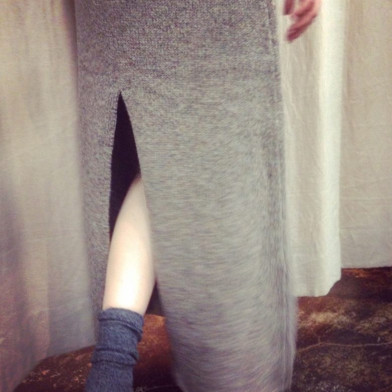 大き目に開いたスリットが、ニット素材なのに女性らしさを演出してくれます!