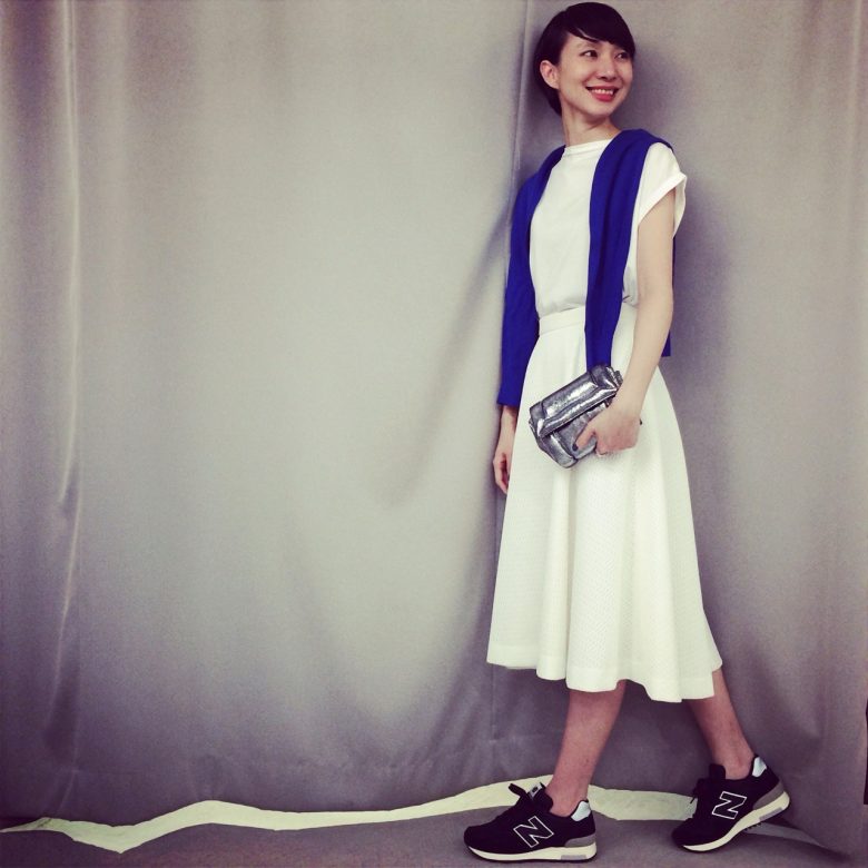 大人気のNBシューズ!春らしい白のコーディネートの外しにも◎ENFOLDのきれいなシルエットのスカートで女性らしさも…♡