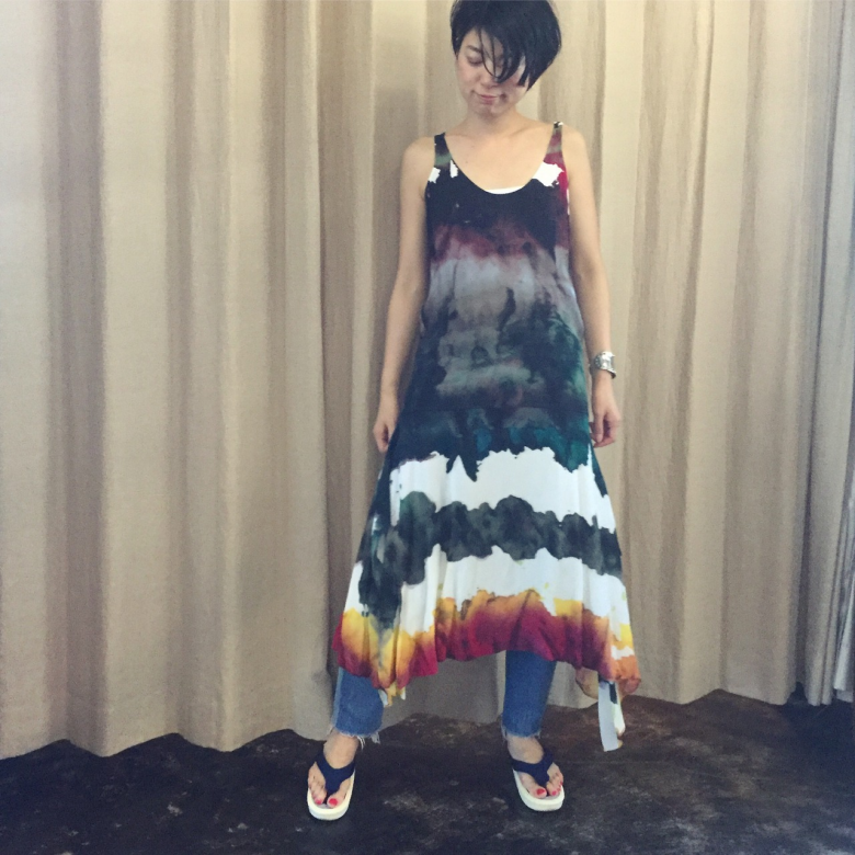 OSAKA 18.05.2017 大胆なプリントが華やかな印象に。 足元を抜け感のあるアイテムでリラックスした着こなしを演出♪ ACNE STUDIOS one-piece ¥160,000+tax 17ss acne acnestudios jojo WEAR ない藤