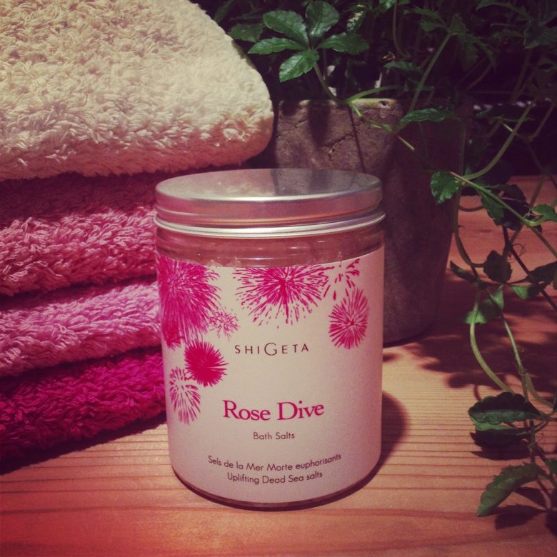 08.10.2014 季節の変わり目にゆっくりとお風呂に浸かりませんか? ローズとローズゼラニウムが潤いを。香りいっぱいで癒しを◎ SHIGETA バスソルト / ローズダイブ ¥2,500(+TAX) shigeta